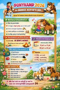 Elk jaar organiseren wij tijdens de zomervakantie twee weken lang onvergetelijke ponykampenvoor de kinderen hier op de manege. Ook dit jaar staaner weer gezellige en leerzame wekenop de planning! Het belooft een actieve en superleukeervaring te worden, vol avontuur en plezier. Wat kun je verwachten?